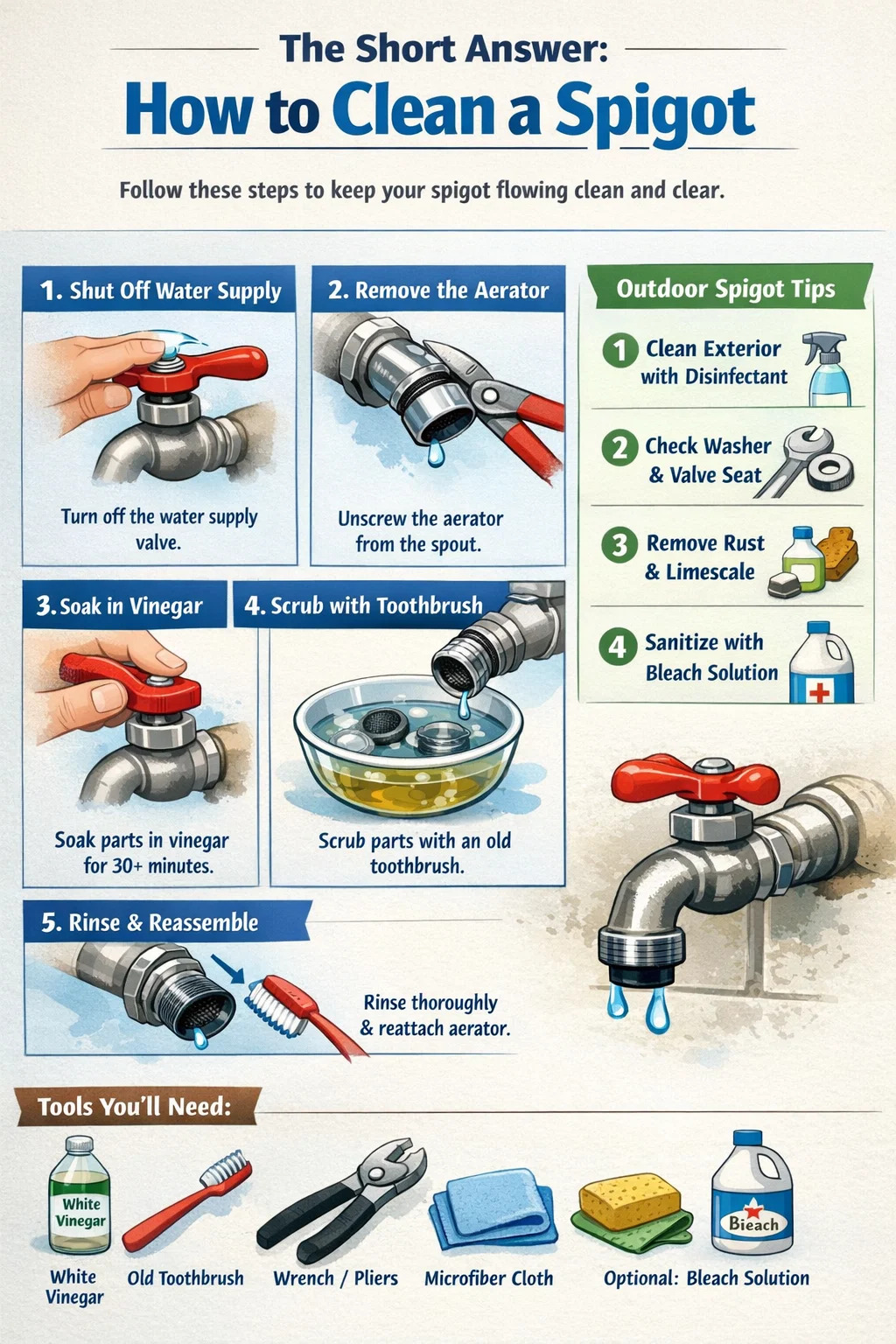 Hic dux omnia tegit: instrumenta quae debes, quomodo genera spigots purgare, quomodo de depositis duris mineralibus agere, quomodo fauces velit inconsideratus, et quomodo dosculum tuum conservare sic diutius perdurat.