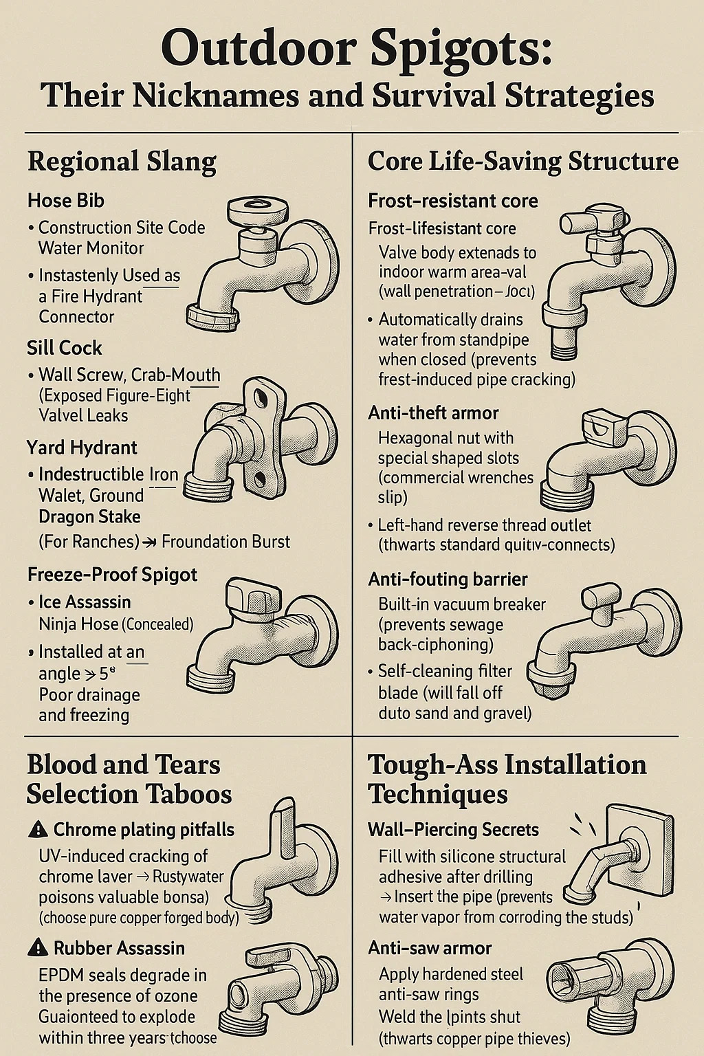 | Hydrant navale | Frost-Probatur Iron Intestina | Gopher Stick (spec vicus) | Absentis valvae exhauriunt → fundamenta durata |